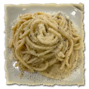 Farina, uova, fior di latte e provola, guanciale, burro pecorino romano, pane grattugiato