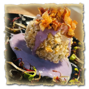 Riso, fior di latte e provola, sedano, carote, cipolla, farina, pane grattugiato, radicchio, gorgonzola, olio di girasole