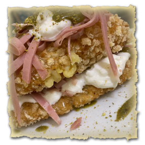 Cotoletta di pollo, patatine fritte, olio di girasole